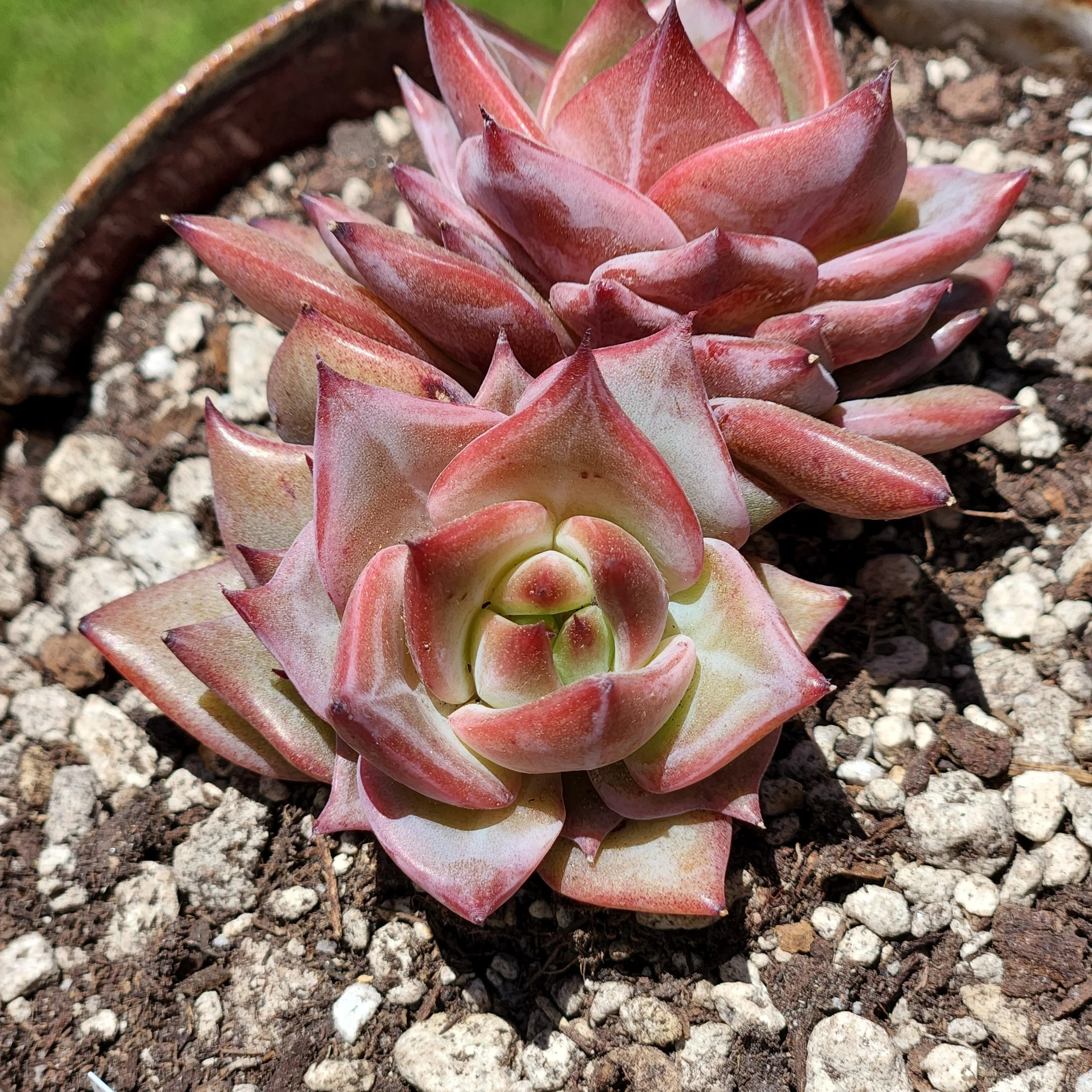 What's interesting, it does not need any grow lights to be of this color in summer. π I can tell you that without grow lights most succulents turn green in summer because to have a stressed color, they need the temperature difference between day and night, which happens in winter.βοΈ I'm really curious what color this stunning echeveria will have in winter! π€©